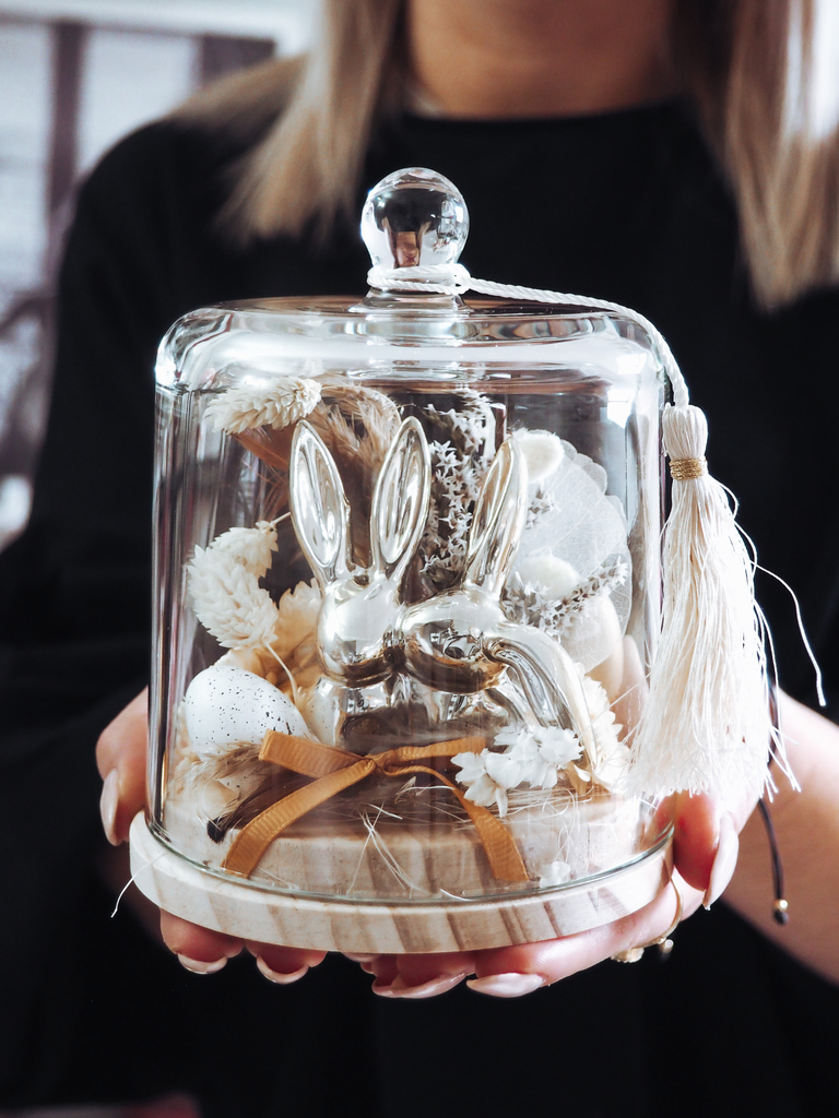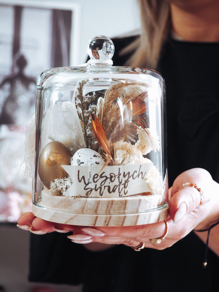 W środku kopuły wydmuszki oraz pisanki z dodatkami suszu naturalnego.