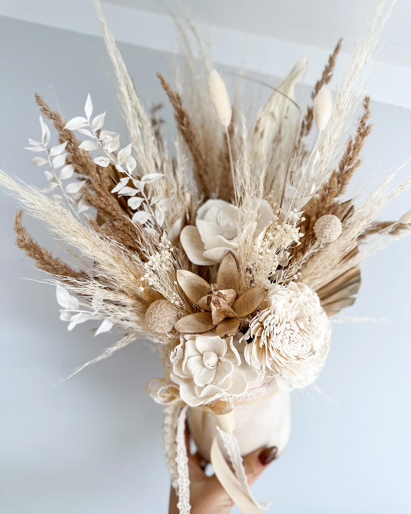 Kompozycja naturalna z suszonych traw pampasowych oraz kwiatów shola.