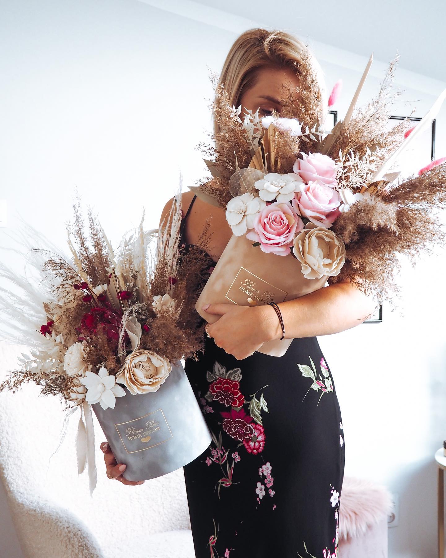 Flower Box wykonany ręcznie z dbałością o każdy szczegół z miękkiego weluru z pięknie wyeksponowanym logo Flower Box Home Decor.