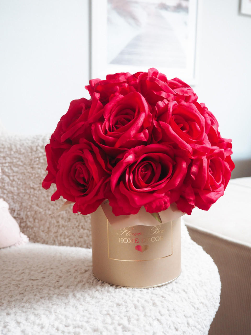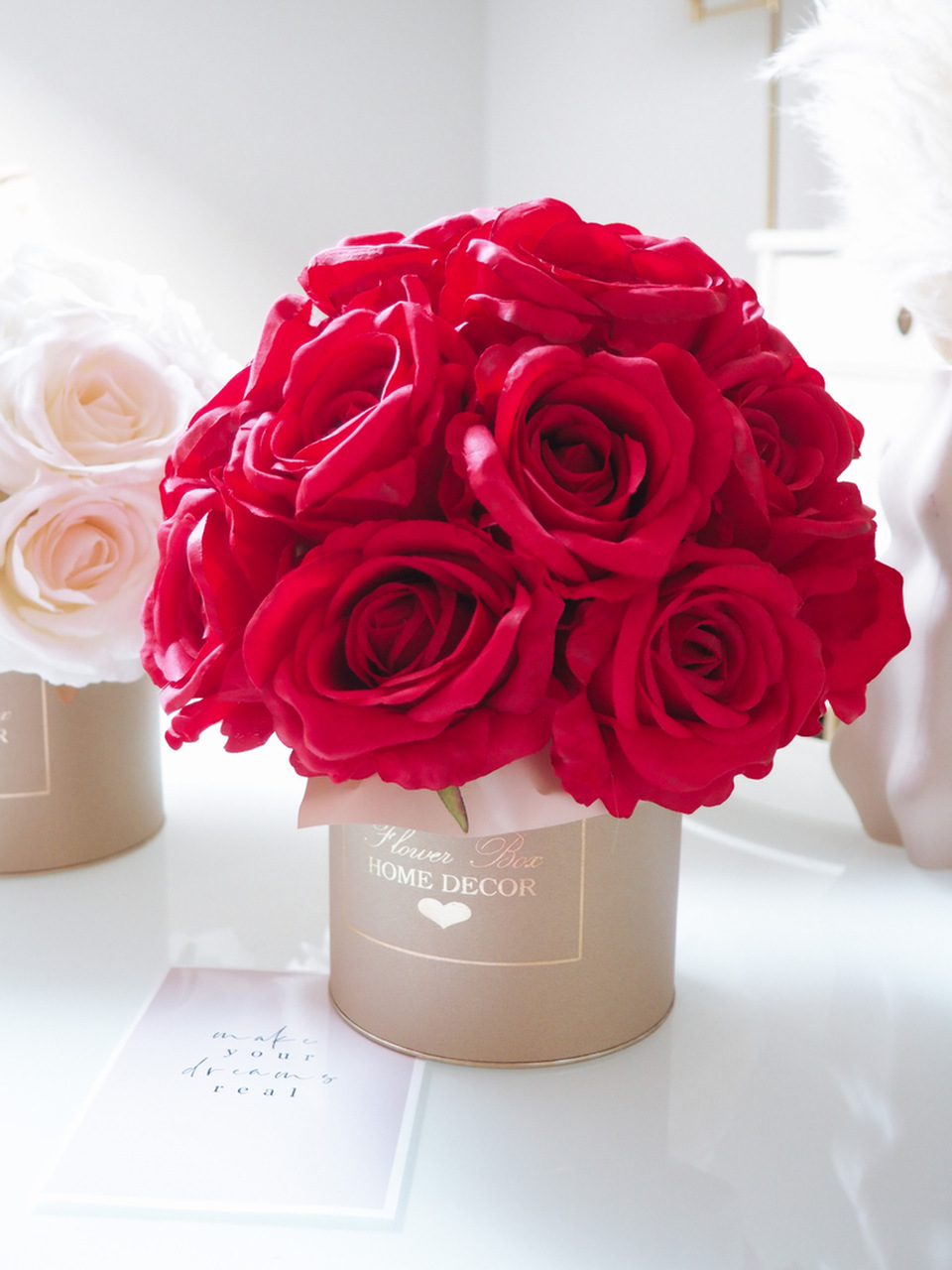 Flower Box wykonany ręcznie z dbałością o każdy szczegół z miękkiego weluru z pięknie wyeksponowanym logo Flower Box Home Decor, rozmiar pudełka 12 cm średnicy - 13 cm wysokości.