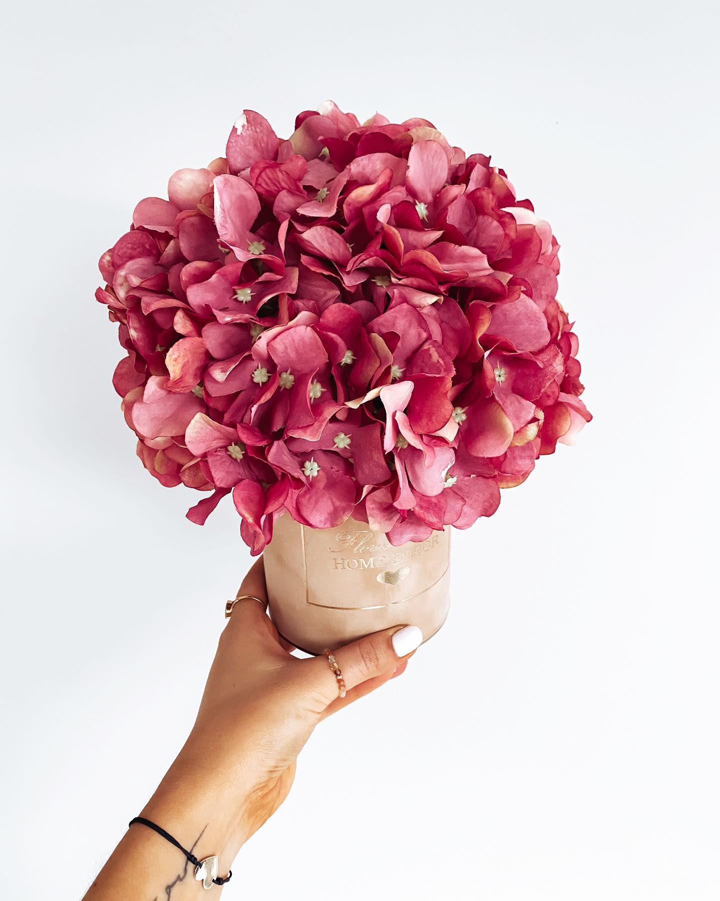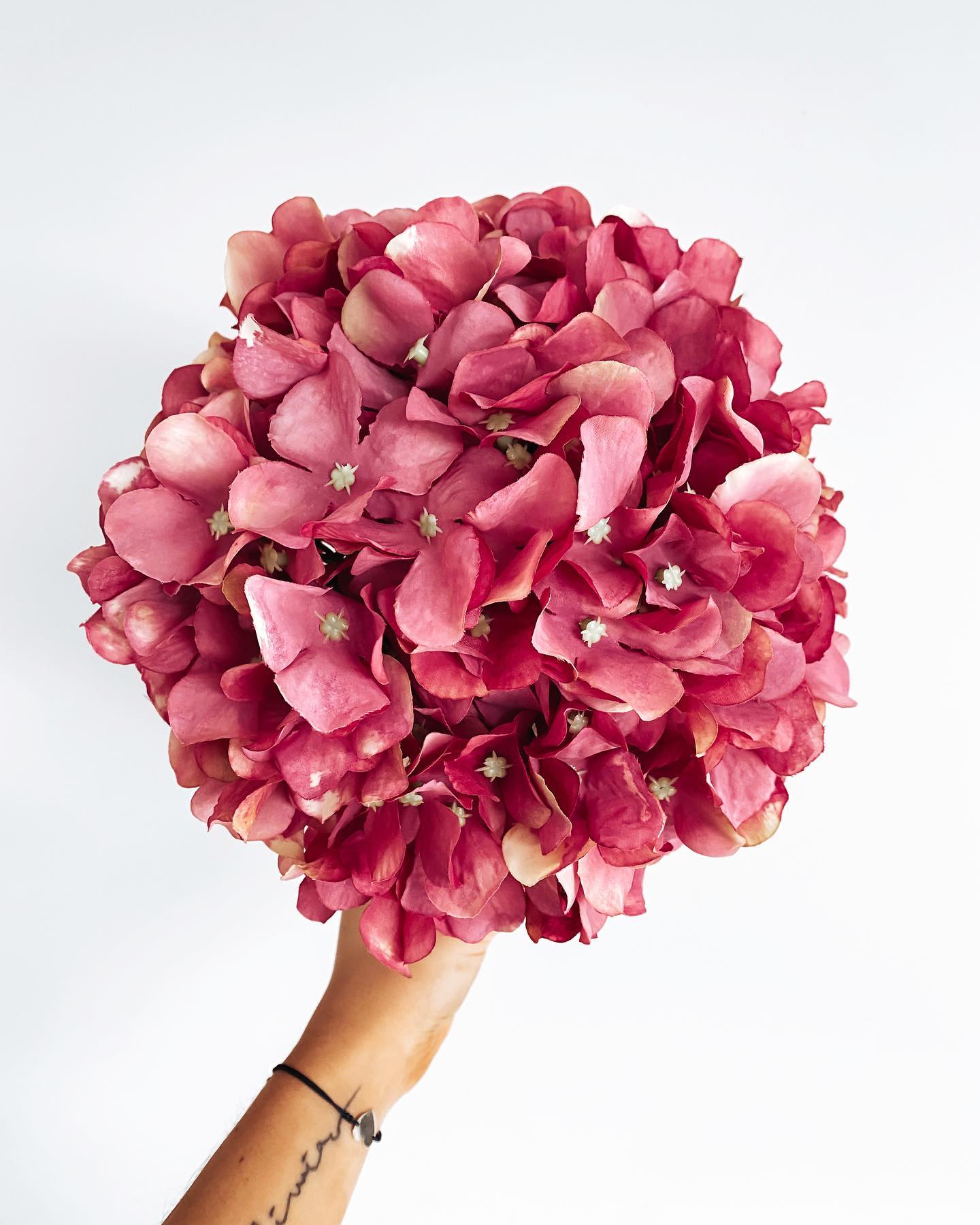 Bukiet z hortensji w kolorze ciemnego różu, pięknie cieniowany kwiat do złudzenia przypomina żywy.