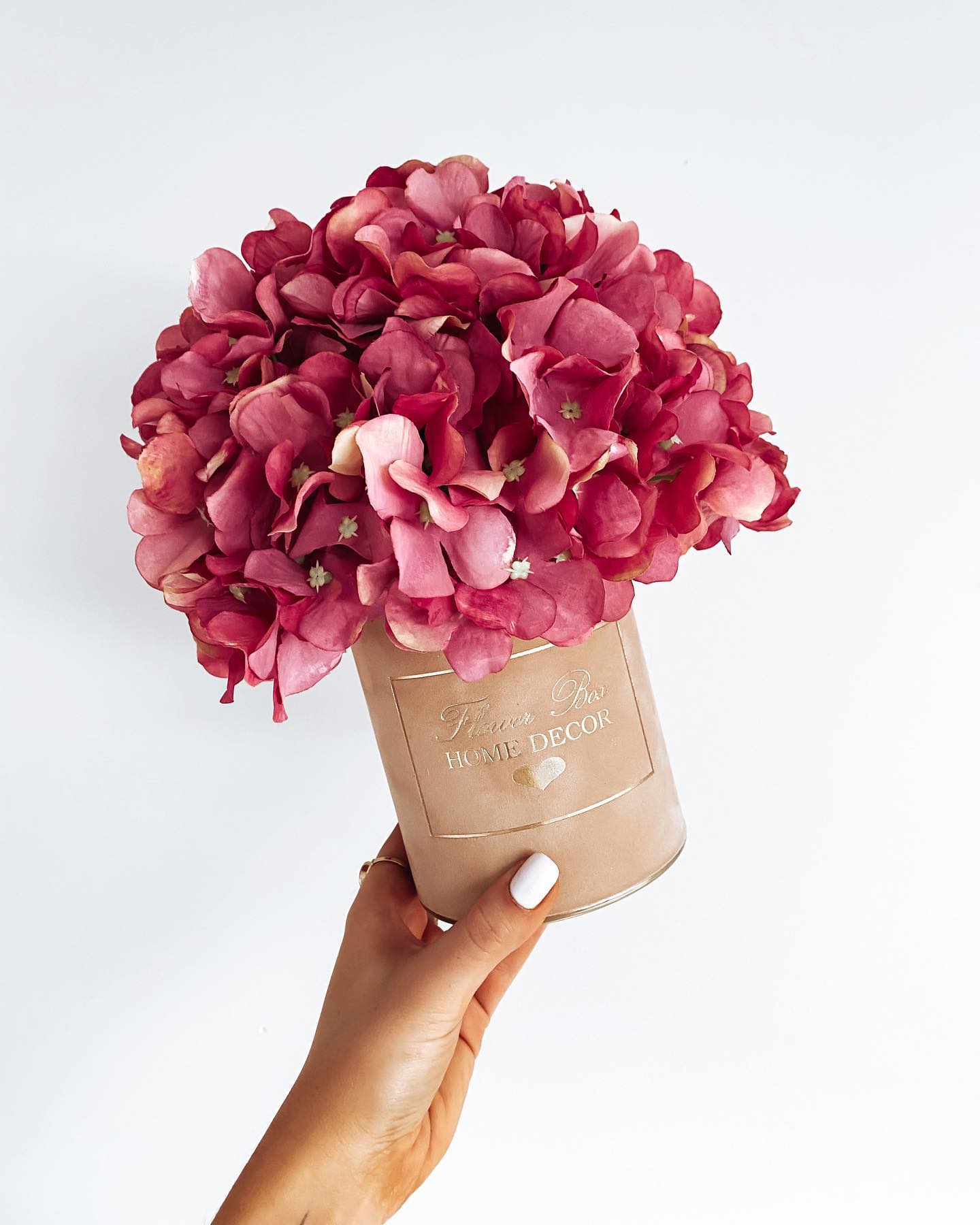 Flower Box wykonany ręcznie z dbałością o każdy szczegół z miękkiego weluru z pięknie wyeksponowanym logo Flower Box Home Decor.