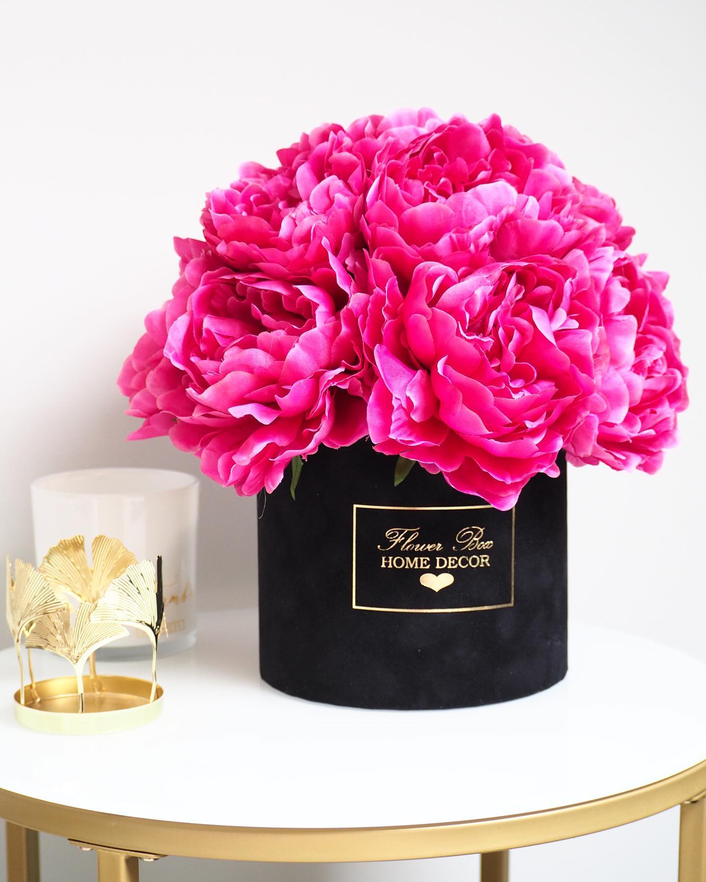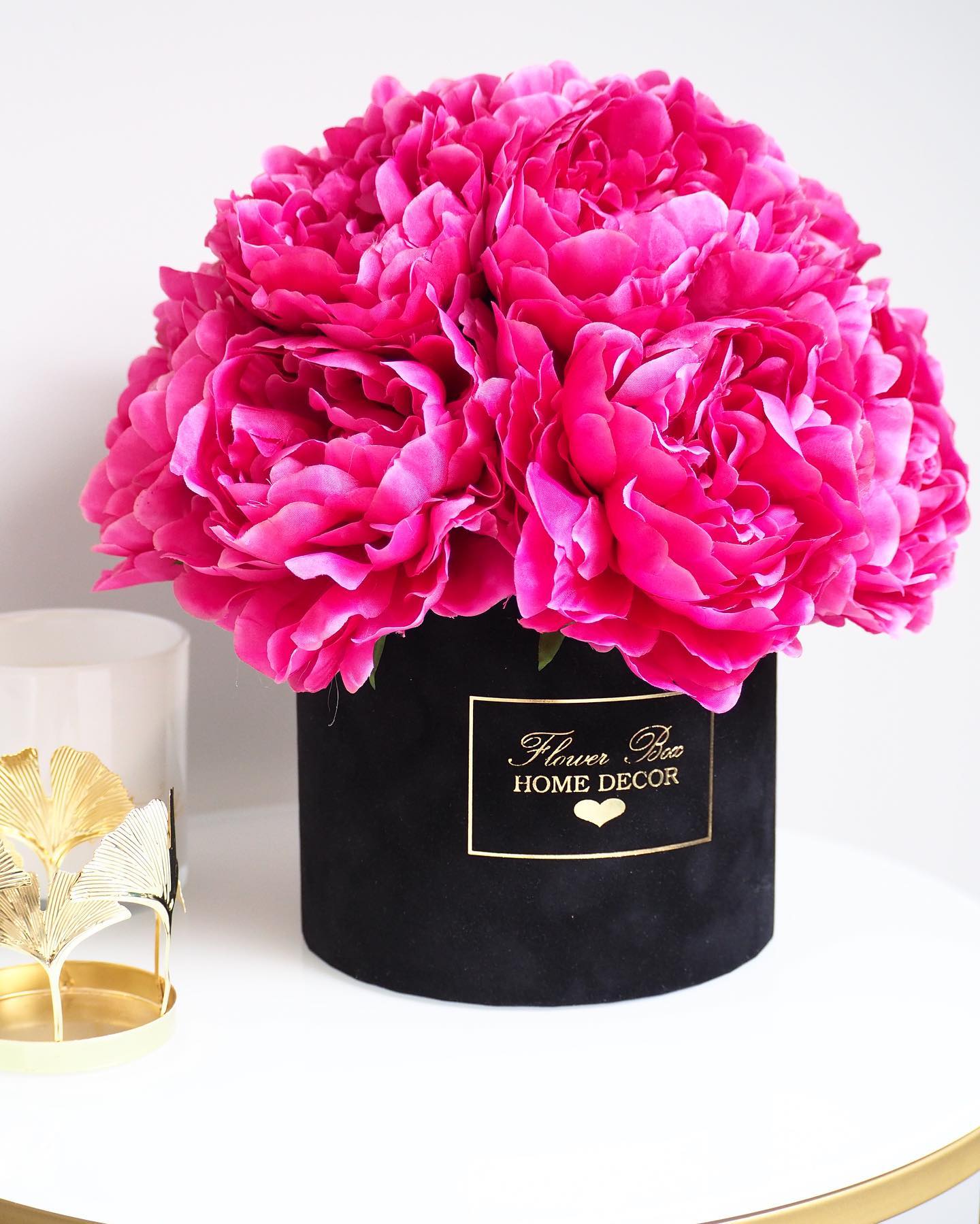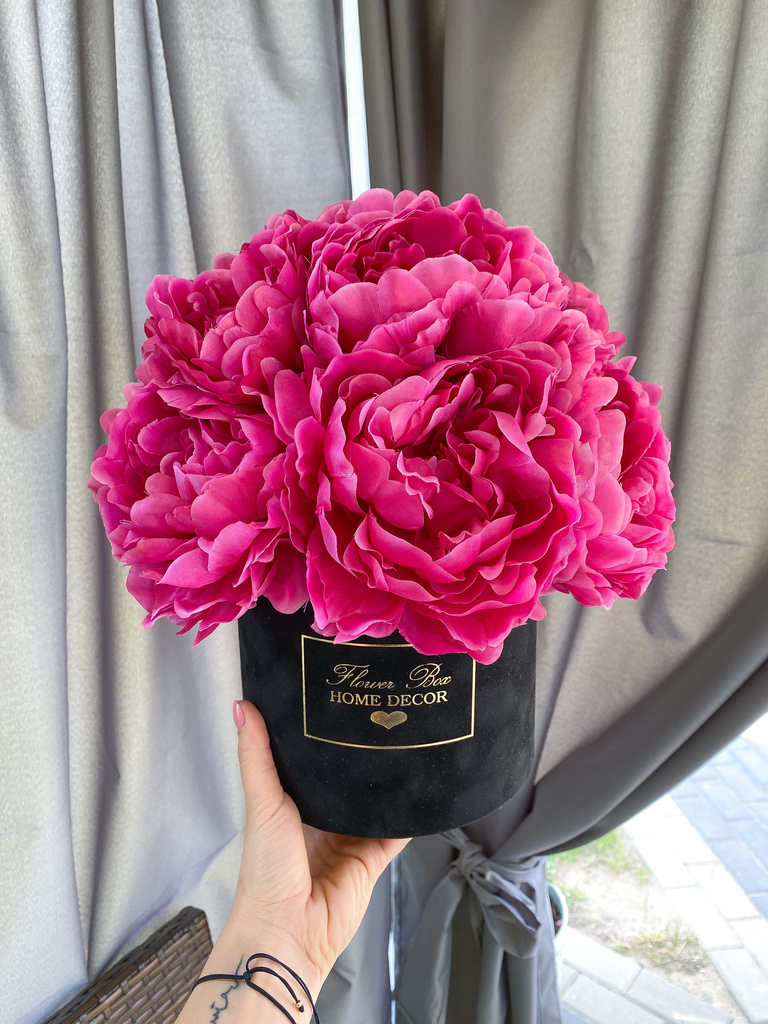 Flower Box wykonany ręcznie z dbałością o każdy szczegół z miękkiego weluru z pięknie wyeksponowanym logo Flower Box Home Decor.
