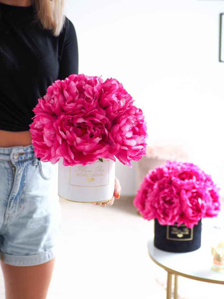 Flower Box wykonany ręcznie z dbałością o każdy szczegół z miękkiego weluru z pięknie wyeksponowanym logo Flower Box Home Decor.