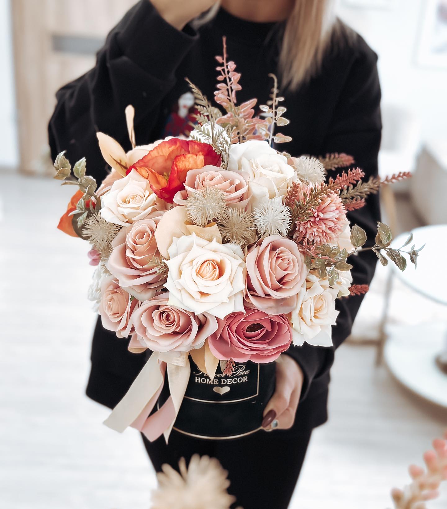 Flower Box wykonany ręcznie z dbałością o każdy szczegół z miękkiego weluru z