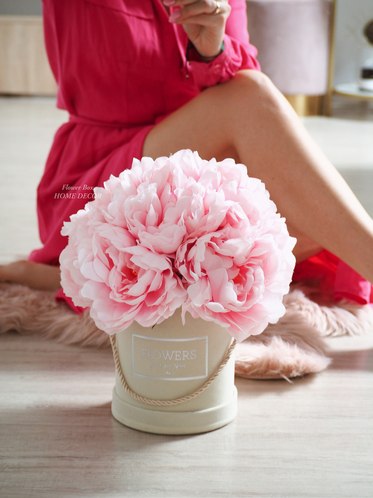 Cudowne jedwabne piwonie to nasz hit, obfity bukiet w welurowym pudełku to elegancja w całej swej okazałości.
