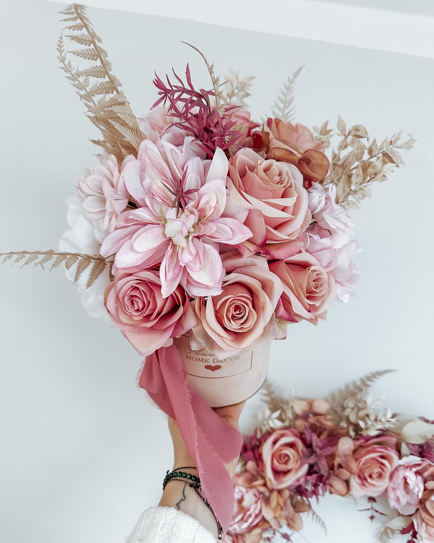Flower Box wykonany ręcznie z dbałością o każdy szczegół z miękkiego weluru z