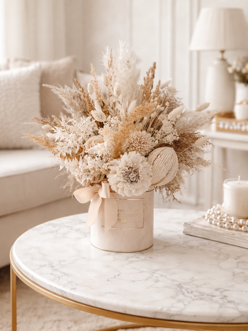 Naturalna kompozycja z suszonych roślin to dekoracja, która wprowadza do wnętrza ciepło, spokój i ponadczasowy styl.