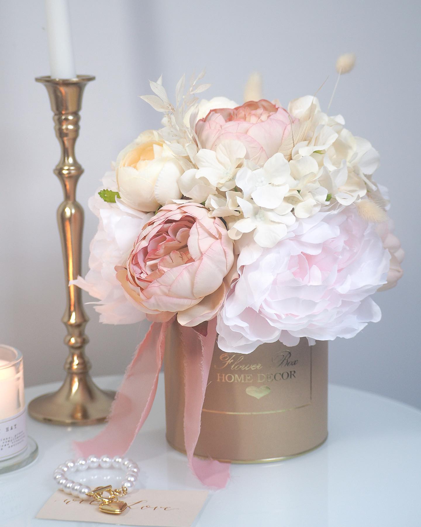 Flower Box wykonany ręcznie z dbałością o każdy szczegół z pięknie wyeksponowanym logo Flower Box Home Decor.