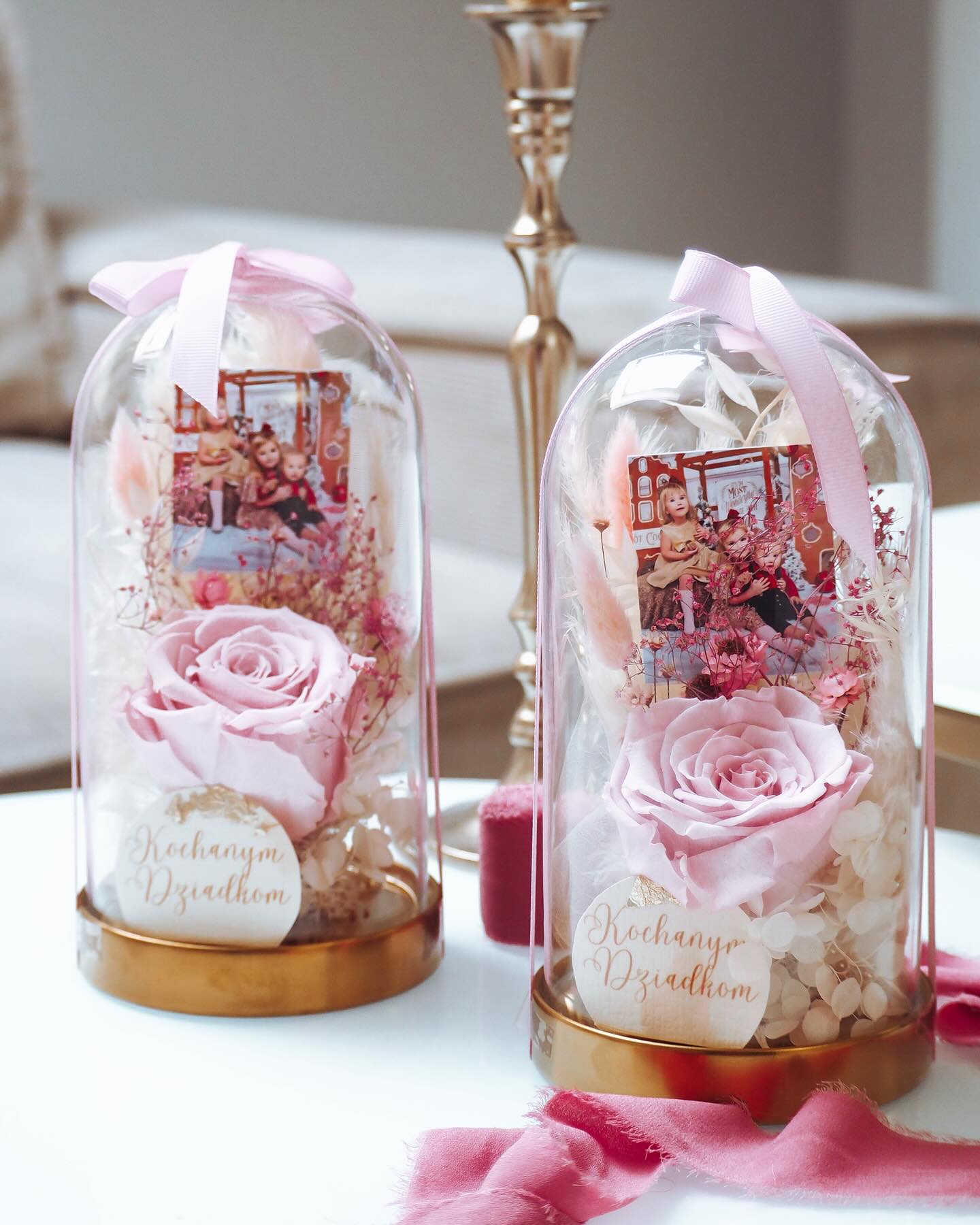 Głównym elementem jest wieczna róża czyli, żywy kwiat który będzie świeży około 3-4 lat.
