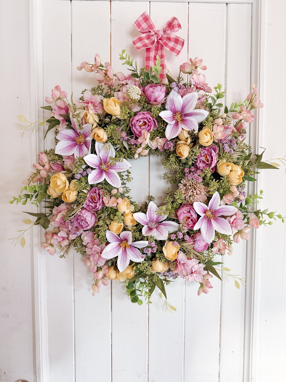 Baza zielona. Całość około 55 cm. Idealny wianek iście wiosenno letni na Twoje drzwi!
