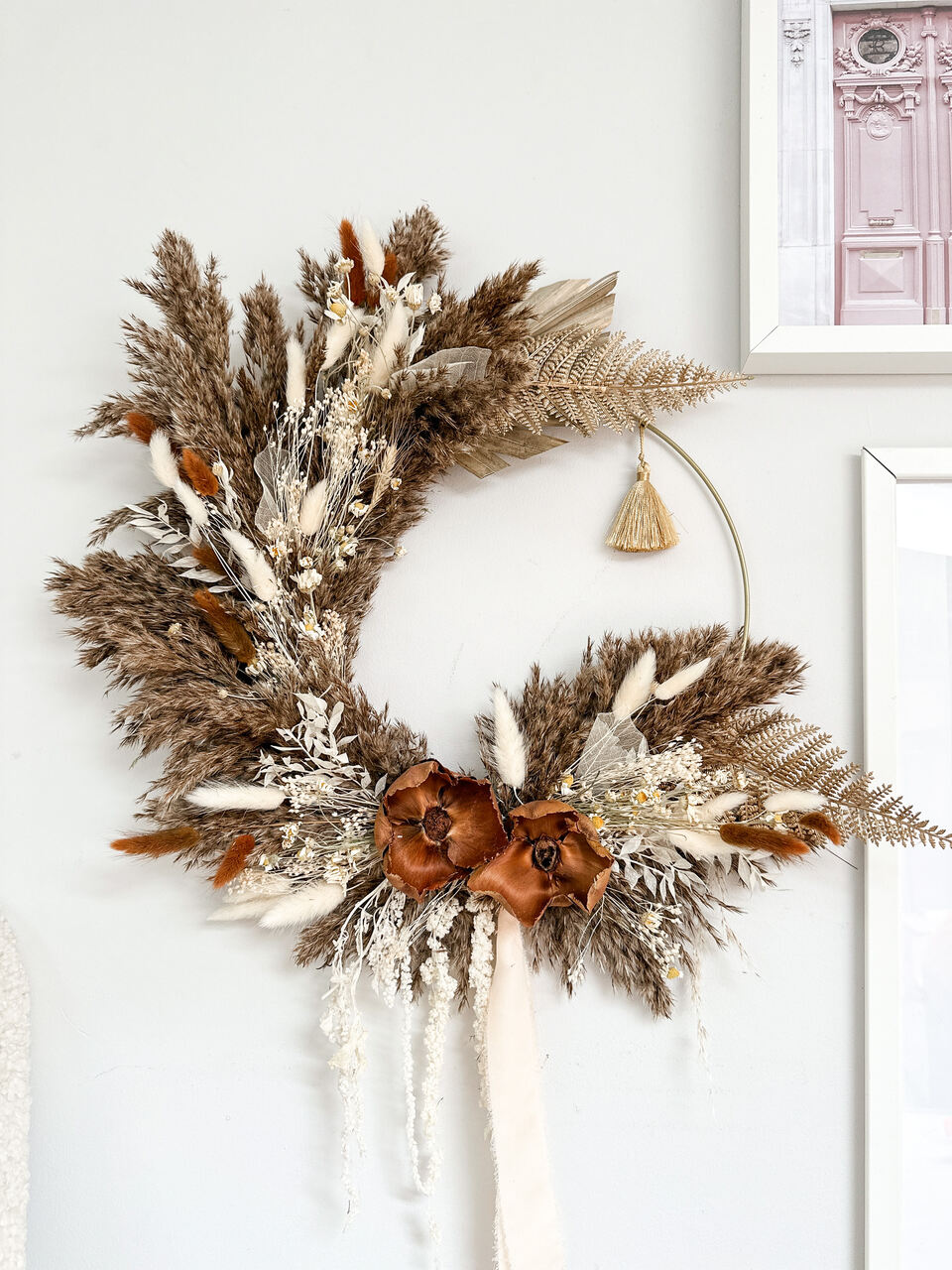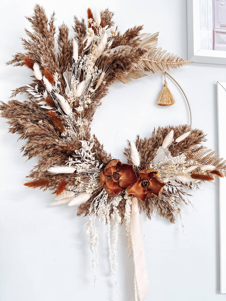 Wianek ręcznie pleciony, całość suszona i naturalna.