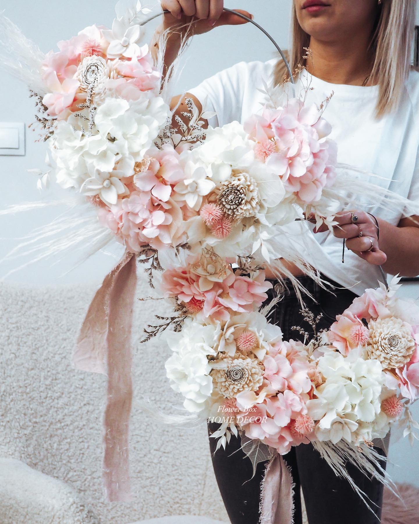 Dekoracja z kwiatów sztucznych najwyższej jakości, dodatkami suszu,