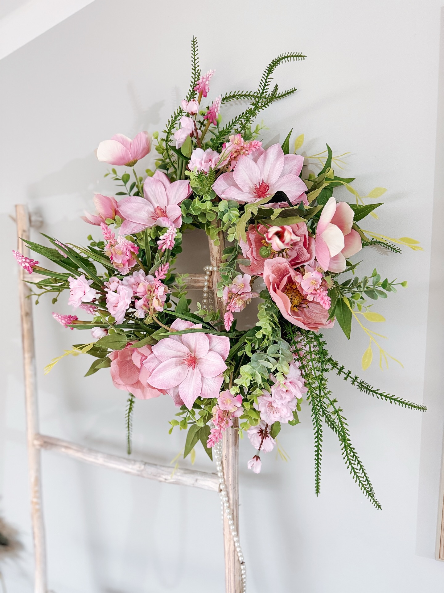 Ten wianek to połączenie lekkości, elegancji i naturalnego uroku – idealny do zawieszenia na drzwiach wejściowych, w przedpokoju lub jako dekoracja domu.